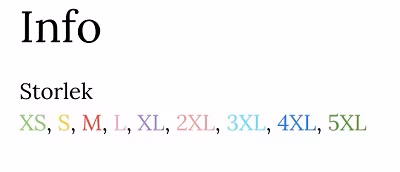 Mönstret är färgmarkerat i storlekarna. (se bild) Dessa färger följer med i hela mönstret, för att underlätta att snabbt hitta för sin storlek.