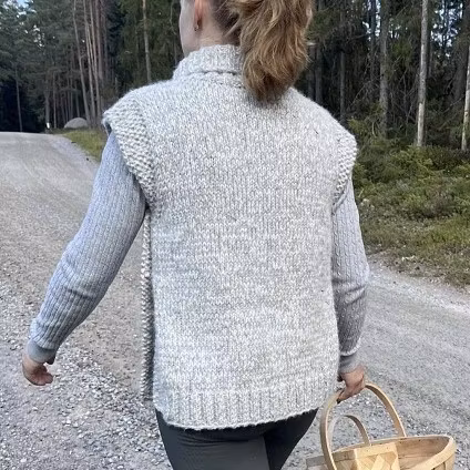 Denna väst är stickad i Drops Merino extra fine och Drops Air.