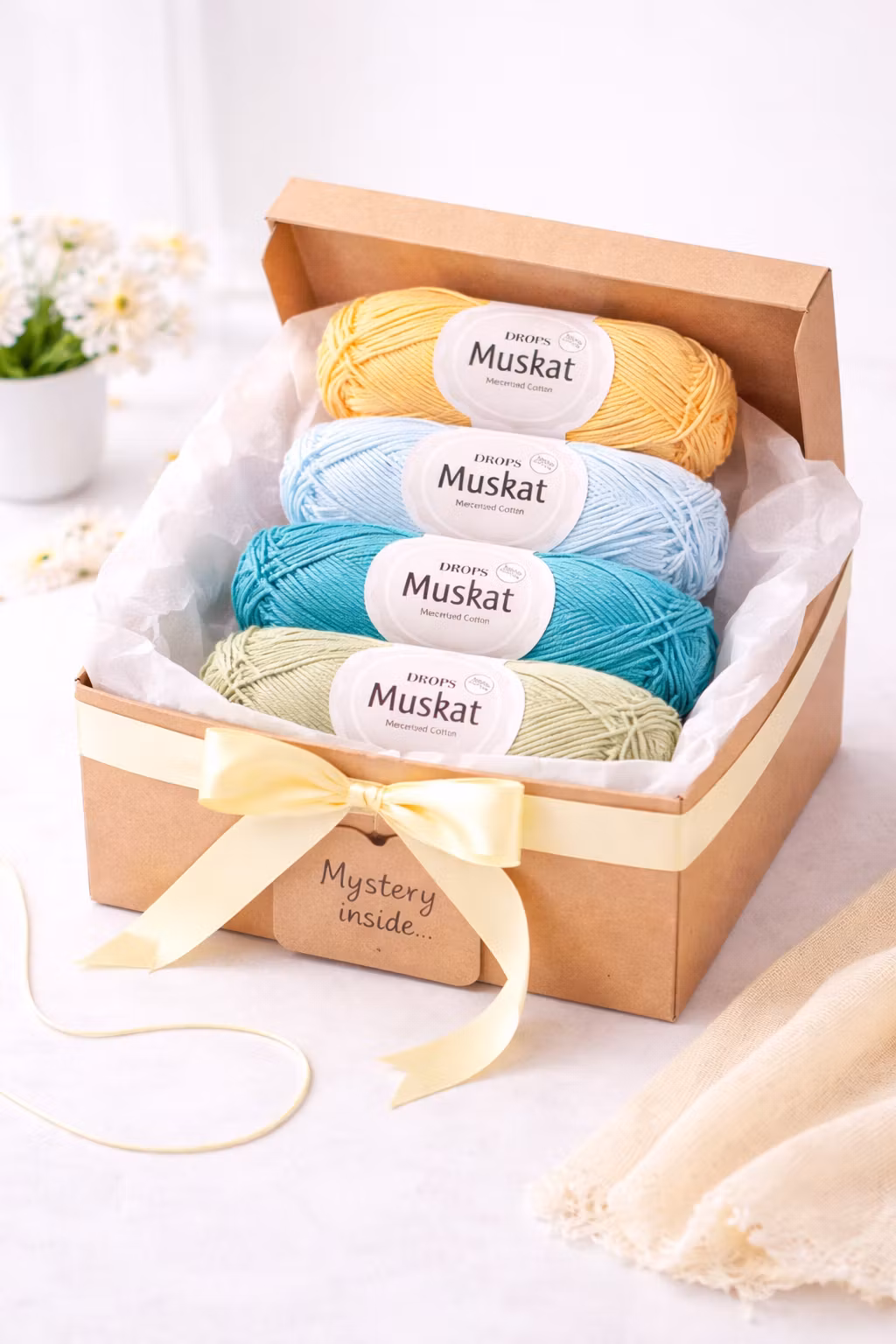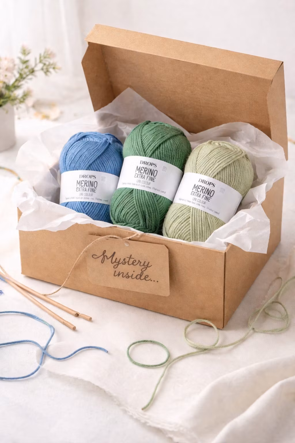 Tänk dig känslan av att öppna ett paket där du inte vet exakt vad som väntar – men du vet att det kommer vara garn du vill kasta dig över direkt. Välkommen till vår Mystery Box-prenumeration!